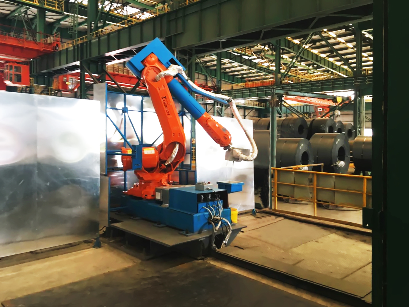 4、防塵防高溫設(shè)計。針對現(xiàn)場惡劣的環(huán)境,機(jī)器人采用耐高溫材料包裹、視覺設(shè)備采用防塵及通氣冷卻。